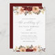 Charm your wedding invitees with this beautiful wedding invitation, featuring burgundy and peach florals and greenery.