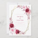 Are you looking for a romantic floral wedding invitation? Check out this burgundy and pink wedding invitation. The burgundy flowers take centre stage surrounded by pink flowers of different shades and light purple leaves. The flowers are decorated a gold geometric border which encases that wording of your wedding invitation.
