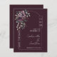 This save the date pairs moody elegance with modern symmetry. A deep wine background sets a romantic tone, while the upper left corner blooms with florals in rich wine, soft lavender, and muted sage green—lush and painterly against the dark canvas.