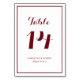 Complete your event's tablescape with this customizable table numbers card. It features modern calligraphy and simple typography. The colours are burgundy red and white, perfect for fall or autumn weddings, bridal showers, baby showers and other events. Personalize by adding names and other event details. This is a part of a wedding collection.