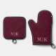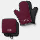Burgundy and White | Modern Monogram Oven Mitt & Pot Holder Set