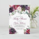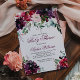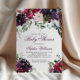Chic bridal shower invitation with a watercolor flowers in burgundy marsala, blush pink and purple, with green botanical foliage and eucalyptus leaves. A beautiful choice in lush, saturated jewel tone colours for fall or winter celebrations.