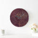 Burgundy background, circle seamless pattern. large clock