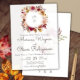 Burgundy floral on beige wreath wedding invitation for a romantic wedding invitation.
