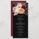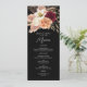 Add a touch of moody romance to your reception with this elegant wedding menu card. Featuring deep burgundy, ivory, and peach watercolor florals on a dramatic black background, this menu highlights your multi-course meal in stylish script typography. Perfect for autumn or evening weddings.