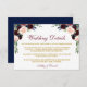 Watercolor Burgundy Blue Floral Wedding Details Insert Card - Blue Back
