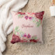 Burgundy Blush Floral Name Monogram Throw Pillow