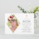 Blush pink and burgundy (marsala) floral geometric baptism or christening with gold glitter geometric frame designed to be quickly and easily customized to your specifics. A portrait shaped photo is recommended.