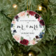 Burgundy Blush Navy Floral First Christmas Ceramic Ornament