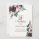 Burgundy Blush Pink Floral Leaves 21st Birthday Invitation