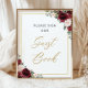 Burgundy Blush Pink Floral Please Sign Guest Book