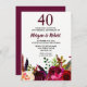 Burgundy Boho Flowers 40th Wedding Anniversary Invitation