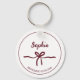 Burgundy Bow Bridesmaid Script Modern Name Date Keychain
