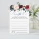 Burgundy Navy Blue Blush Floral Bridal Shower Date Night Idea Advice Card.