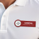 Personalize this burgundy round shaped name tag with your company logo, employee name and job title. It's available with a magnetic back fastener or with a safety pin back. It's a lightweight name tag - 1.25 inch by 3.75 inch. Be sure to select a backing option where it says "Backing Option" on the product page.