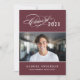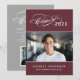 Celebrate your graduate with this elegant graduation party invitation featuring a flourished "Class of" calligraphy script with the year on a rich burgundy background alongside a senior portrait framed by thin line accents. The grey back features a beautiful "Celebrate" script headline with a second photo spot and all your party details. Fully customizable text on both sides.