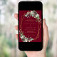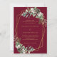 For a winter wedding. A burgundy coloured background decorated with cones, white berries and greenry. A faux gold geometric frame. Personalize and add your names and details.