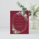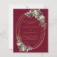 For a fall or winter wedding. A burgundy background decorated with cones, white berries and greenry. A faux gold oval frame. Personalize and add your names and details.