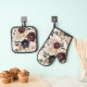 Burgundy Cream Black Floral Oven Mitt & Pot Holder Set