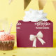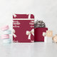 A burgundy background, cream coloured text and a bow. Merry Christmas is written with a retro style font. Personalize and add a name