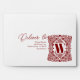 This envelope design features a luxurious and fully personalized style. At its heart is an ornate damask frame adorned with flowing floral motifs and delicate heart details, within which a bold alphabet letter rests, giving the piece a regal identity. The deep burgundy tones contrast beautifully with the light background, creating a rich, sophisticated finish. The damask pattern brings a sense of timeless tradition, while the hearts add a romantic touch, making the overall design elegant and warm.