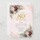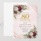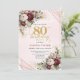 Burgundy Deep Red Floral Gold 80th Birthday Invitation