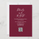 Featuring signature style names, this elegant burgundy wedding invitation can be personalized with all your special wedding day information on the front and your wedding website details and QR code on the reverse. Designed by Thisisnotme©