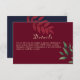 Share important information with your guests using this elegant fall wedding details card. Designed with a deep burgundy background, greenery accents, and classic gold script, this card is perfect for autumn and winter weddings.