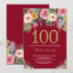 Burgundy Floral 100th Birthday Invitation Gold