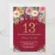 Burgundy Floral 13th Birthday Invitation for Women. Watercolor Floral Flower. Black and Gold Glitter. Pink, Yellow, Orange, Purple Flower. Adult Birthday. For further customization, please click the "Customize it" button and use our design tool to modify this template.