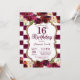 Burgundy Floral 16th Birthday Party Invitation for women. Burgundy Red and Gold Birthday Party Invite. Gold Glitter. Burgundy Watercolor Floral Flower. Burgundy and White Stripes. 13th 15th 16th 18th 20th 21st 30th 40th 50th 60th 70th 80th 90th 100th, Any Ages. Printable Digital. For further customization, please click the "Customize it" button and use our design tool to modify this template.
