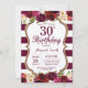 Burgundy Floral 30th Birthday Party Invitation for women. Burgundy Red and Gold Birthday Party Invite. Gold Glitter. Burgundy Watercolor Floral Flower. Burgundy and White Stripes. 13th 15th 16th 18th 20th 21st 30th 40th 50th 60th 70th 80th 90th 100th, Any Ages. Printable Digital. For further customization, please click the "Customize it" button and use our design tool to modify this template.