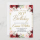 Burgundy Floral Women 80th Birthday Invitation, Red Floral And Gold, Surprise invitation.