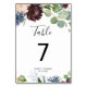 This burgundy floral and greenery wedding table number is perfect for a winter wedding. The elegant boho design features watercolor navy, blush pink and wine shade flowers with artistic penciled details.