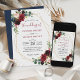 Burgundy Floral Blue Gold Modern Geometric Wedding Invitation
