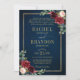 Burgundy Floral Gold Navy Blue Rustic Wedding Invi Invitation