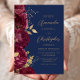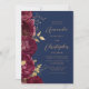 Burgundy Floral Gold Script Navy Blue Wedding Invitation