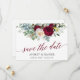 Modern Calligraphy Script, Elegant Watercolor Burgundy Floral Greenery Engagement Announcement Wedding Save The Date Card includes peonies, eucalyptus leaves and other beautiful greenery.
