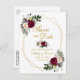 Burgundy Floral Greenery Gold Save The Date Announcement Postcard