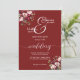 An elegant wedding invitation with dusty burgundy flowers and elegant calligraphy that you can customize with your details.