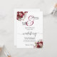 An elegant wedding invitation with dusty burgundy flowers and elegant calligraphy that you can customize with your details.