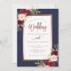 Burgundy Floral Navy Blue Rose Gold Script Wedding Invitation