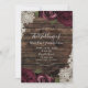Burgundy Floral Roses Rustic Wood Lace Wedding Invitation