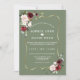 Burgundy Floral Sage Green All In One Wedding Invitation