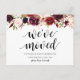 Burgundy floral, We have moved Announcement Postcard