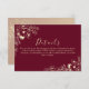 Chic burgundy wedding information card with vintage gold floral artwork and modern script. Use this template to share your RSVP link, venue info, directions, accommodations, or other key wedding details. A lovely touch for fall or winter weddings. Need help editing? Contact bpkolman@gmail.com.