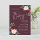 Boho Burgundy and Blush Floral Wedding Invitation. This invitation is characterized by boho burgundy and blush roses and flowers with two modern high-class fonts that shape the trends of the present and future festive events.