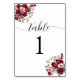 An Elegant Burgundy Floral Table Number. Table number cards are available from number 1 to number 30 in the collection.