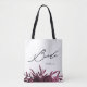 Modern and pretty burgundy floral with elegant bride script and name totebag.