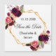 A Save the Date magnet. A faux gold coloured geometric shaped frame with bohemian, boho style watercolored roses, flowers in burgundy and pink. Personalize and add your names, date of the wedding.